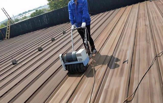 3、用电动砂轮机、钢丝刷或砂布将彩钢瓦表面的锈皮、氧化物打磨干净,并用破布将金属表面的浮尘檫干净。如有油污的地方,采用汽油或稀释剂檫洗干净。要特别注意螺栓连接处、有焊缝的地方除锈一定要彻底。